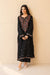 Elegant black 2-piece embroidered suit featuring intricate Kashmiri-inspired detailing, paired with a matching trousar for a timeless winter look.